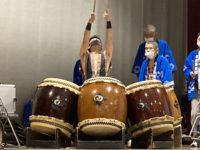 本日は皷響会。新たなメンバーに、「ドンテン」を伝授中